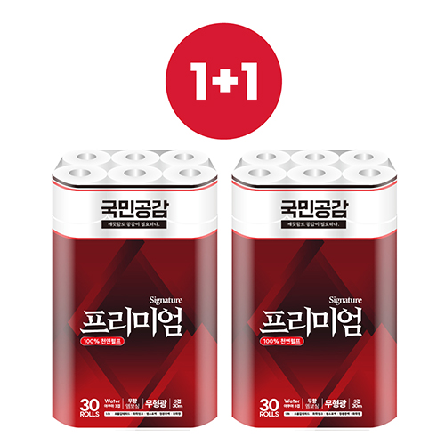 국민공감 프리미엄 시그니처 100% 천연펄프 화장지 3겹 30롤 (1+1)