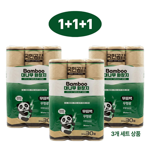 국민공감 100% 대나무 천연펄프 화장지 3겹 30롤 세트상품 (1+1+1)