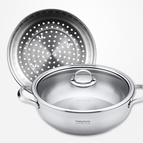 [Hamptons] 독일 햄튼 EOS인덕션 3중바닥 냄비(HEOS-28PS) 궁중전골(28CM)+찜기(28CM)